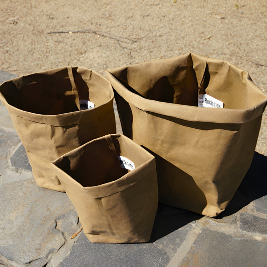 At Rockside, we specialise in Kraft Washable Paper Bags, crafted from a unique blend of natural cellulose fiber and plant-based latex. The term "kraft," derived from the German word for "strength," perfectly captures the robust nature of our material. The cellulose fibres provide outstanding strength and durability, while the latex adds flexibility and water resistance, evolving traditional kraft paper into a modern, eco-friendly solution. This innovative combination results in a material that not only withstands daily use but is also washable, ensuring our bags maintain their shape and integrity over time.