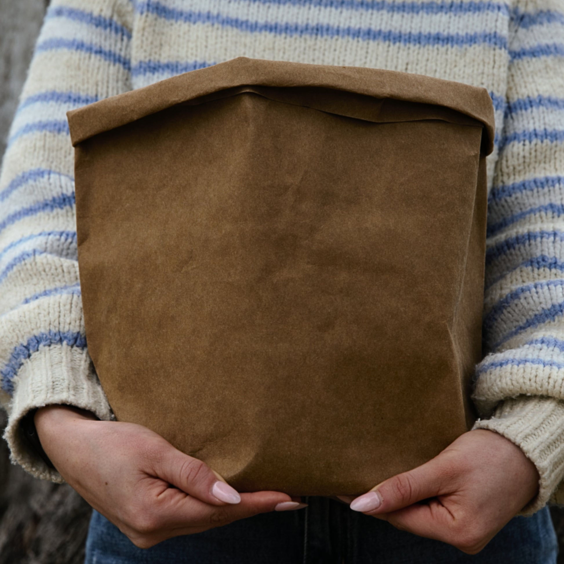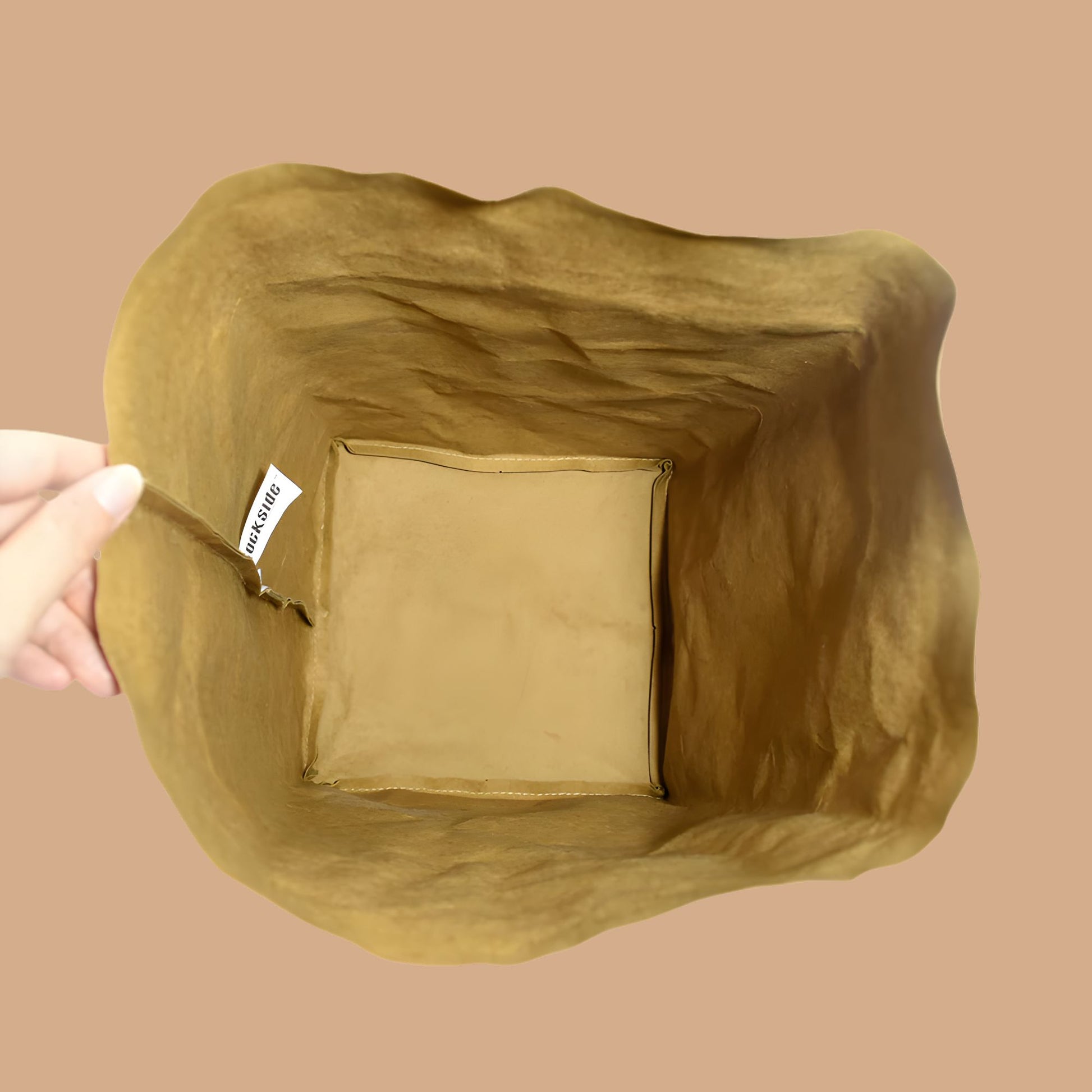 This Extra Large Washable Paper Storage Bag is made of German kraft paper, which is lightweight with high tear resistance, made of natural wooden fiber and synthetic latex. This versatile and functional design of Storage Paper Bags are the solutions for your home use which can be repurposed in your kitchen, bathroom and laundry room.